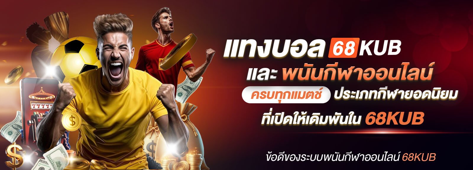 ยินดีต้อนรับสู่หน้า พนันกีฬาออนไลน์ 68KUB ศูนย์รวมการเดิมพันกีฬาครบวงจรทั้ง แทงบอล, แทงบาสเกตบอล, แทงมวยไทยออนไลน์ และกีฬาอื่น ๆ อีกมากมาย เราให้บริการด้วยระบบอัตโนมัติทันสมัย รองรับทั้ง PC และมือถือ ราคาน้ำดีที่สุด อัตราจ่ายสูงสุด และอัปเดตผลการแข่งขันแบบเรียลไทม์